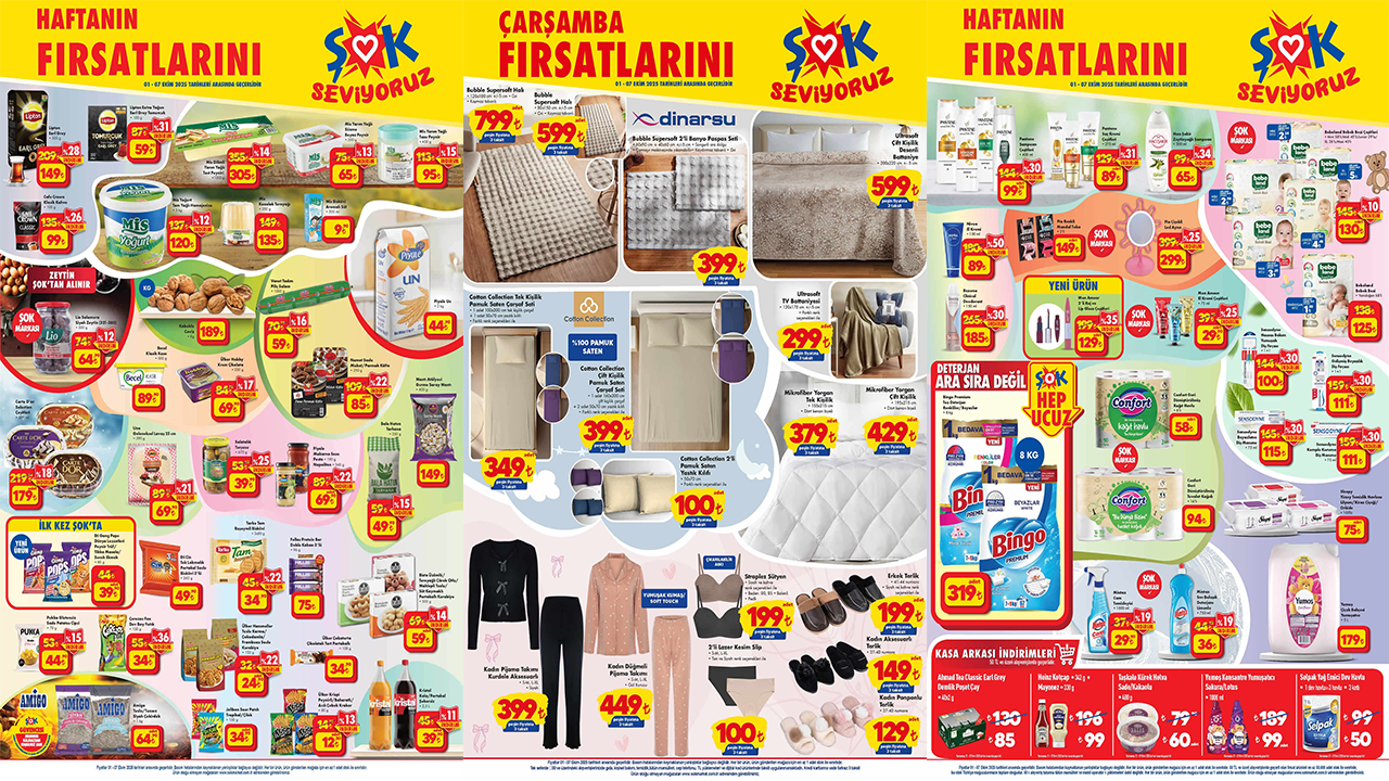 Cam temizleyici, kürek helva, sıvı bulaşık deterjanı, yumuşatıcı, toz deterjan, kağıt havlu, tuvalet kağıdı, diş fırçası, diş macunu, el kremi çeşitleri, deodorant, çiçekli led ayna, mandal toka, el kremi, saç kremi çeşitleri, zeytinyağlı şampuan, şampuan çeşitleri ve bebek bezi çeşitleri gibi ürünlerin yer aldığı 1 Ekim tarihinden itibaren geçerli olan ŞOK kataloğu önceki günlerde yayınlandı.